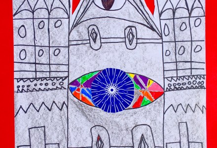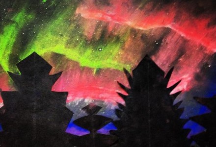 3rd grade Aurora Borealis Chalk Pastel Silhouetted Trees Drawing