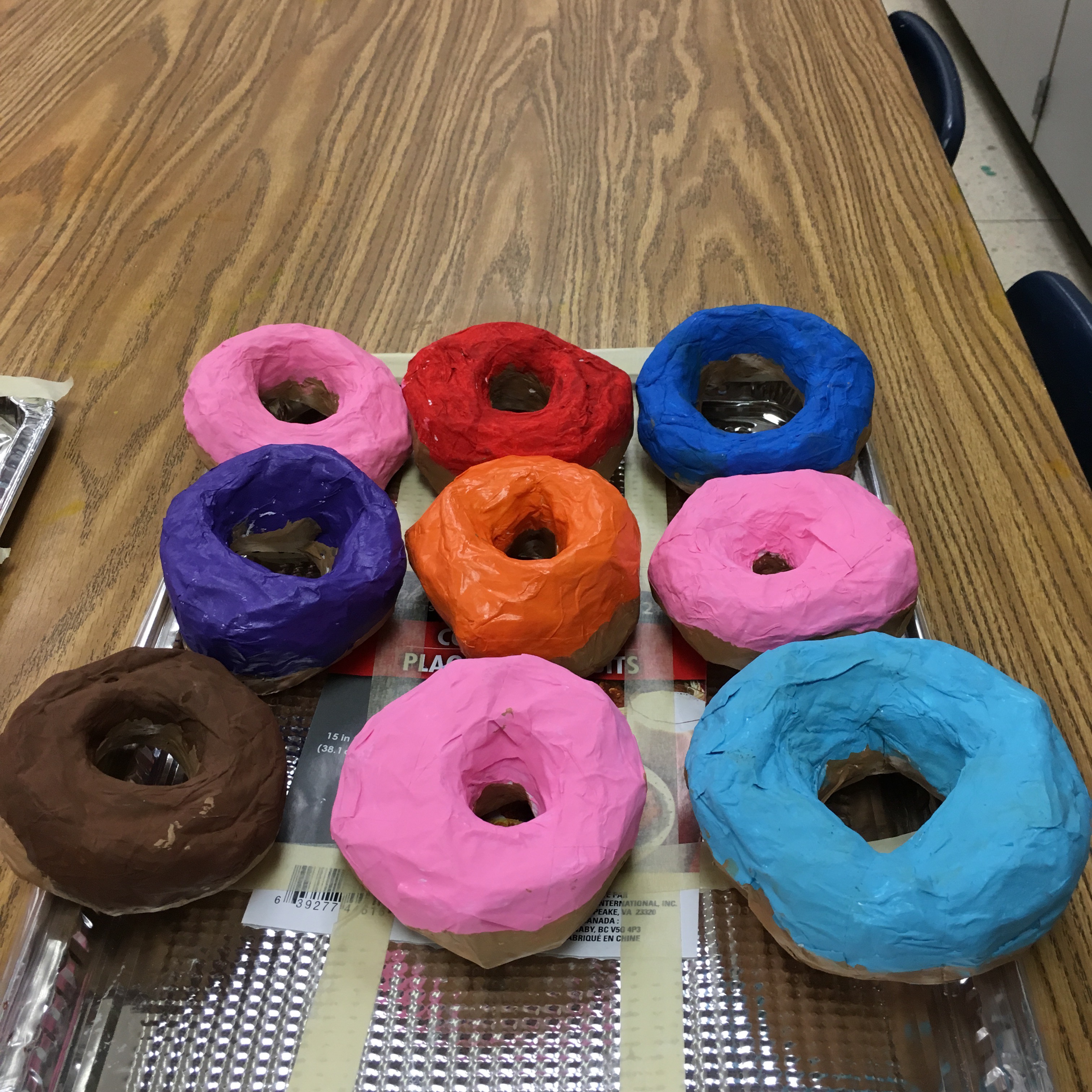 Finished paper maché donuts!