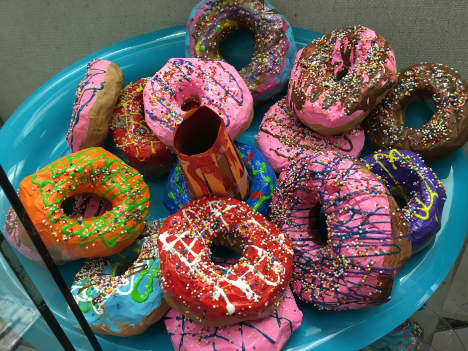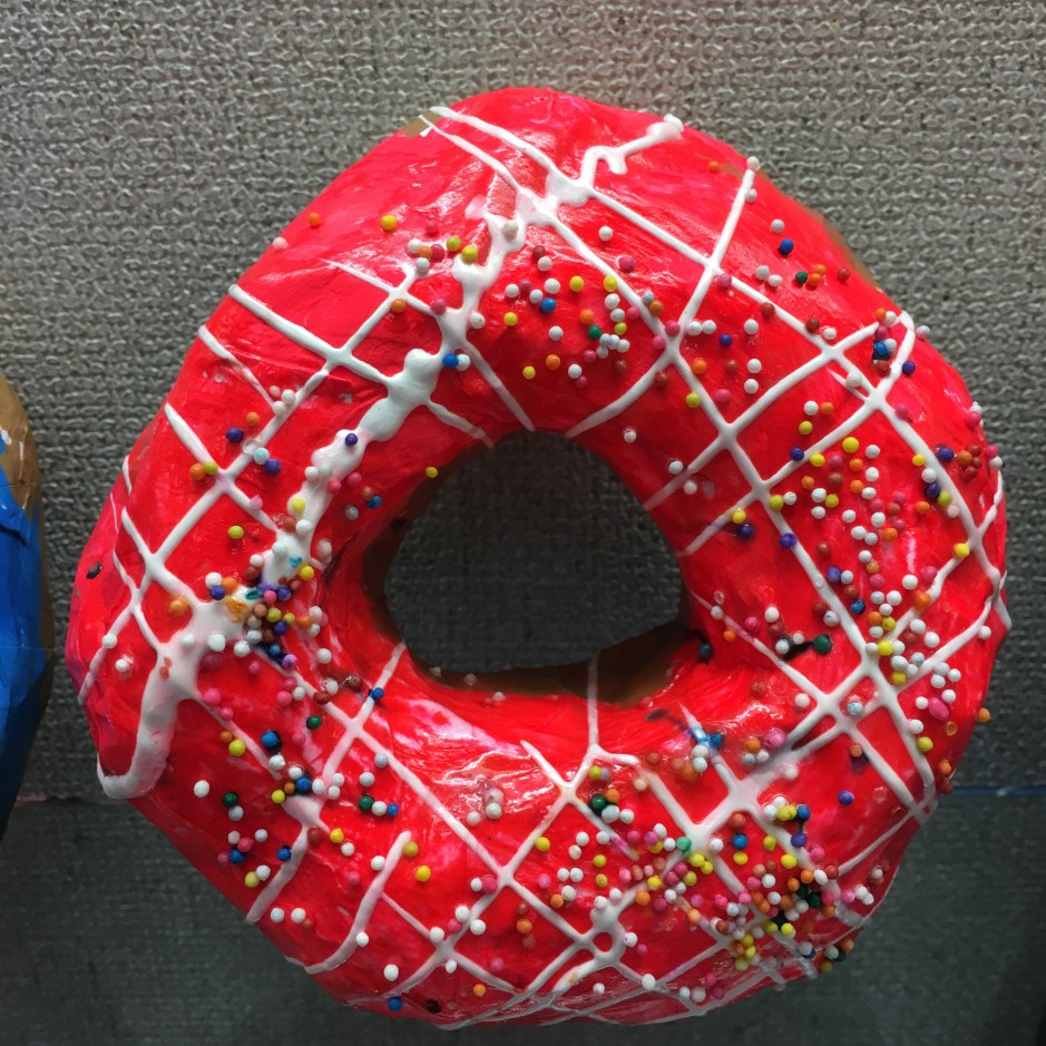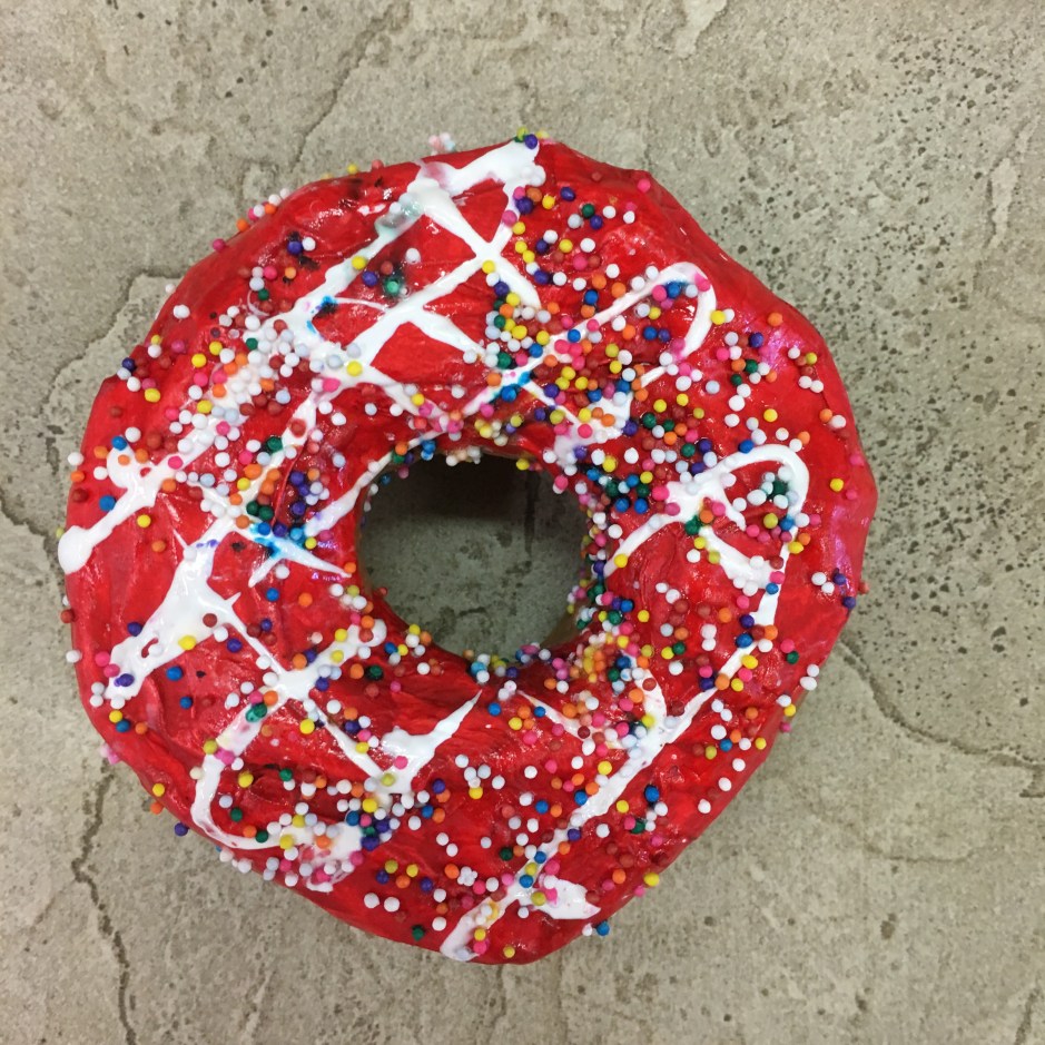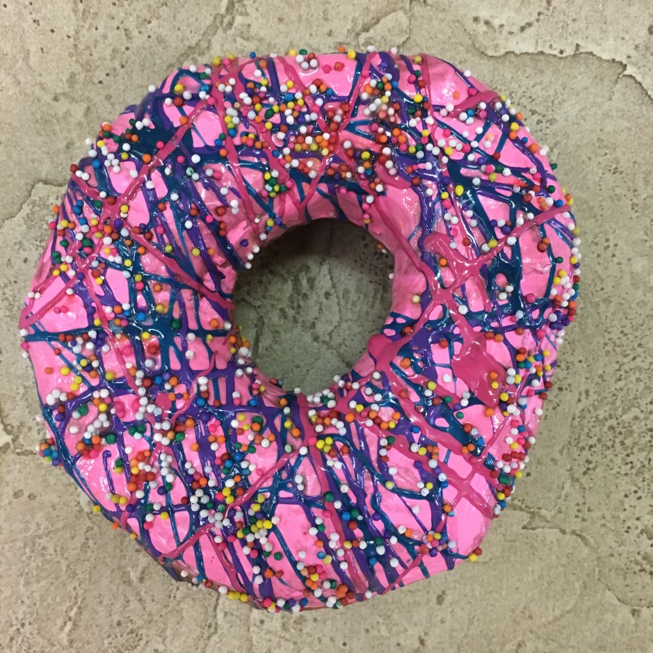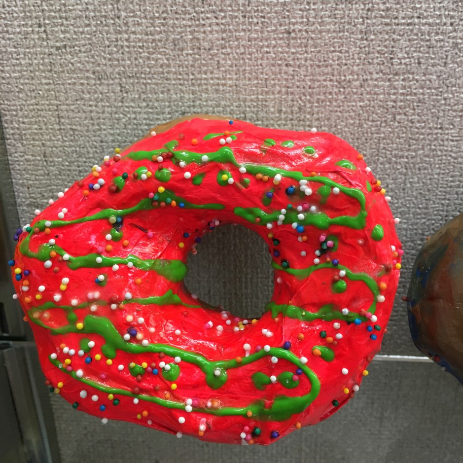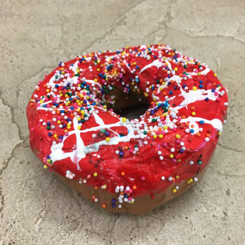 But why make paper mache donuts in art? In semi-recent and very recent art history, donuts have made it into the cannon. (Too bad it’s not a real donut cannon – that would be amazing.) The original donut artist I introduced my students to was Wayne Thiebaud. (Photo copyright of Sotheby’s)