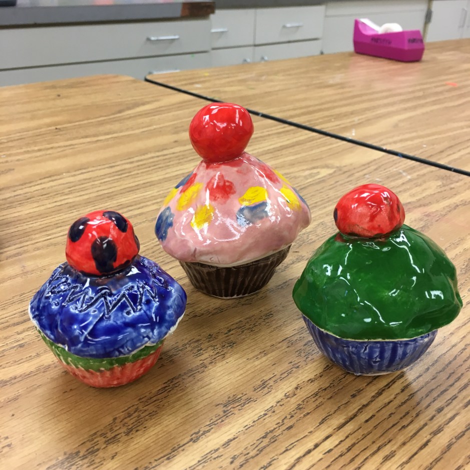 There’s always a little bit of “Why aren’t we making that?” when the different grade levels see each other’s art. We made clay cupcakes last year in 3rd grade. The kids enjoyed making them, and a few turned out pretty good. But overall, most completed cupcakes didn’t match perception of how I hoped they would turn out.