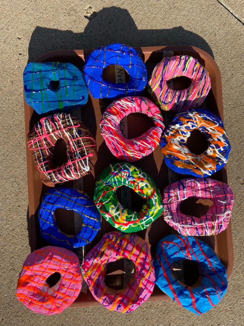 I’ve never taught paper maché before. Hello steep learning curve! My brilliant idea was to make my own test paper maché donuts at home to master a step at a time right before I taught them. I was anxious like I always am before teaching a new art process, but I really wanted to figure it out.