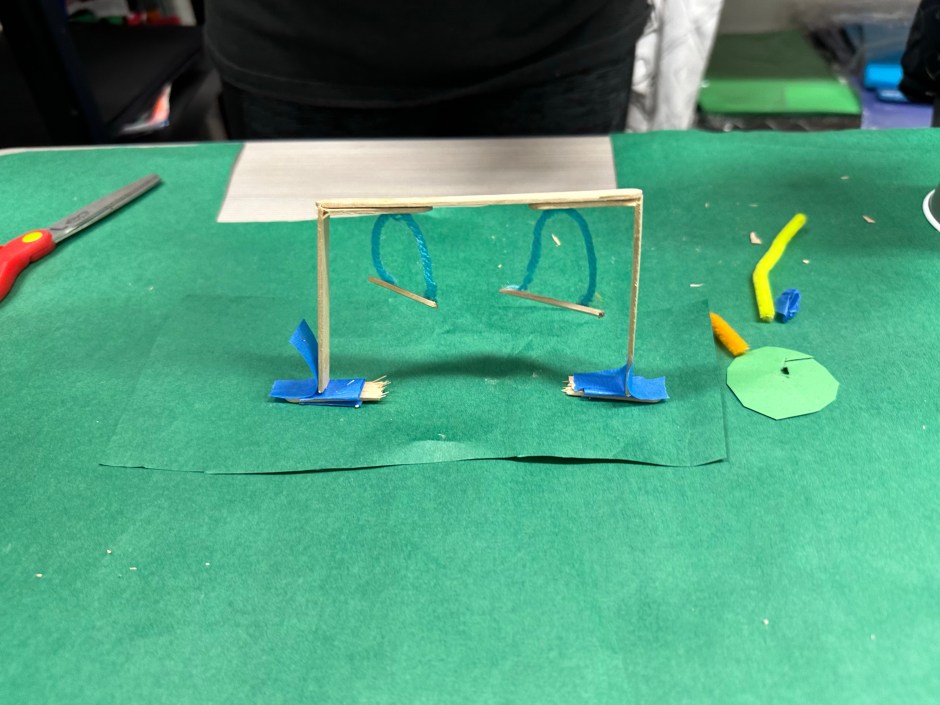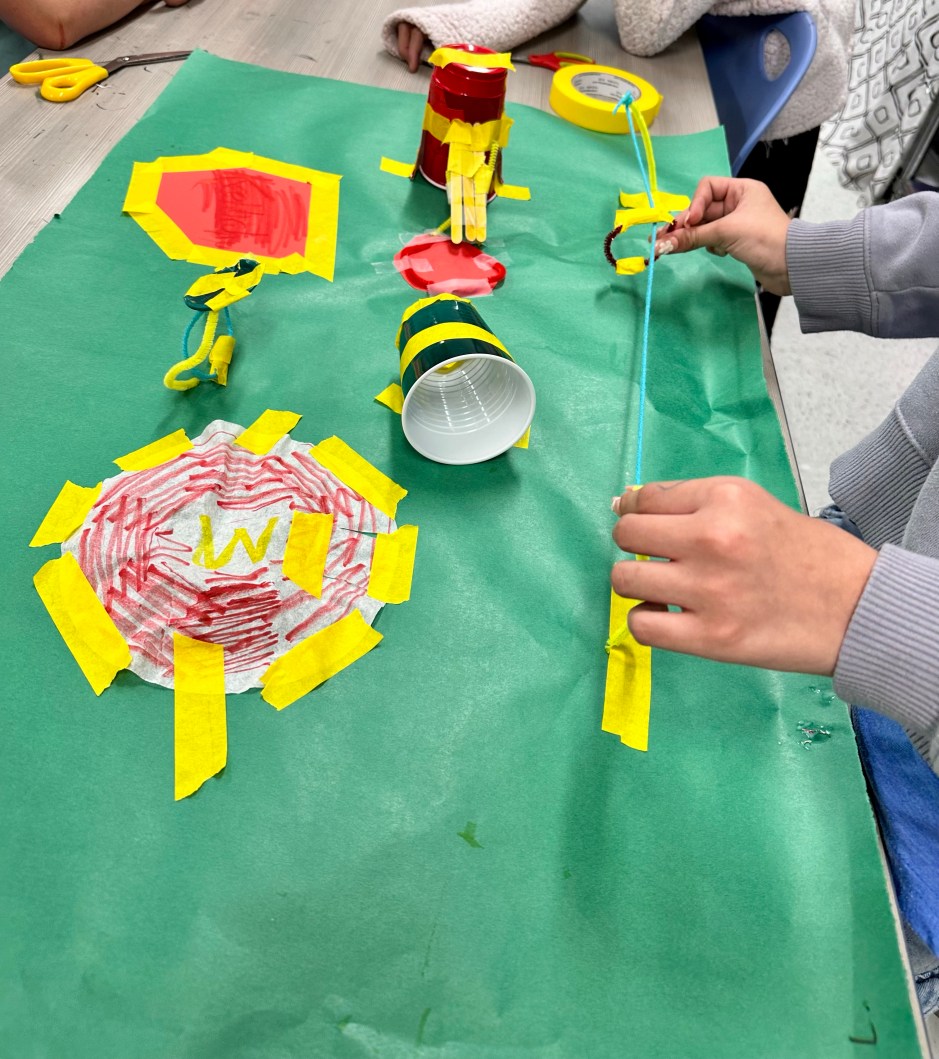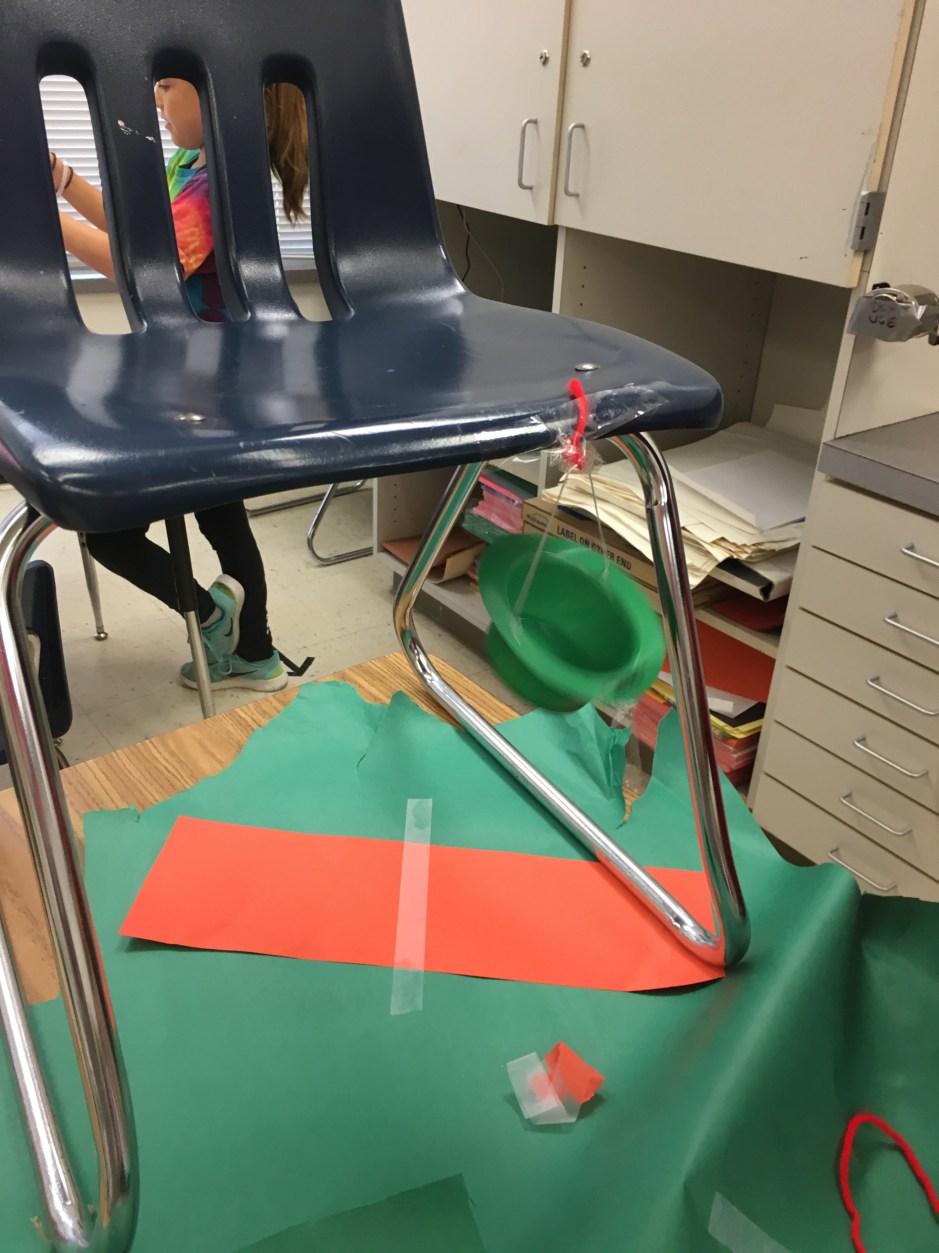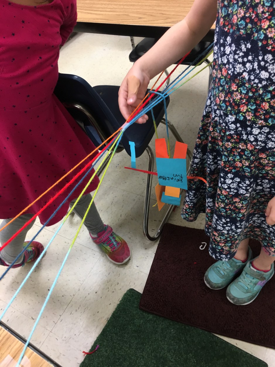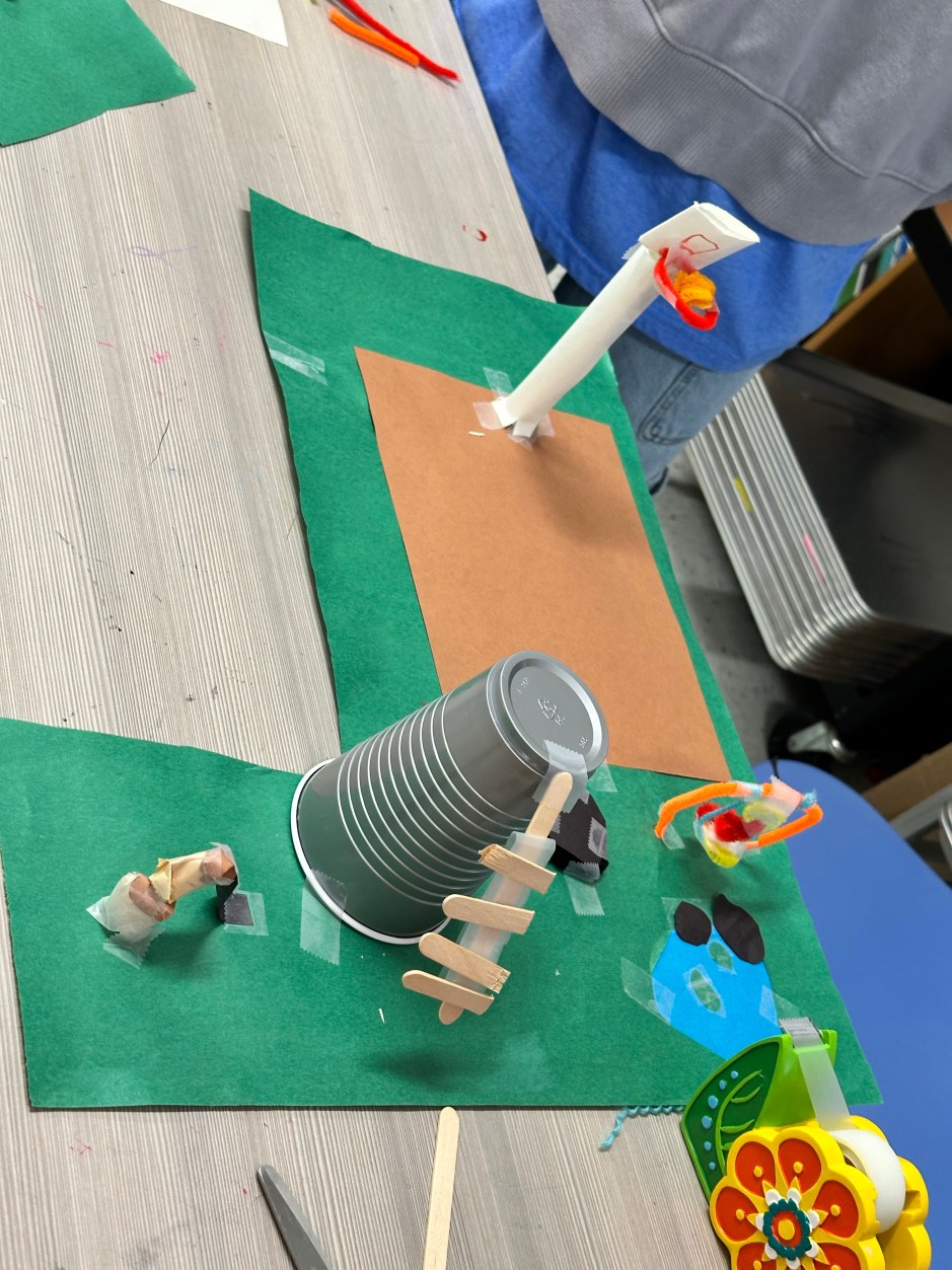 I tore off long sheets of bulletin board paper in every color and provided cups, tape, glue, yarn, and scissors. Each table worked as a team building their playgrounds.