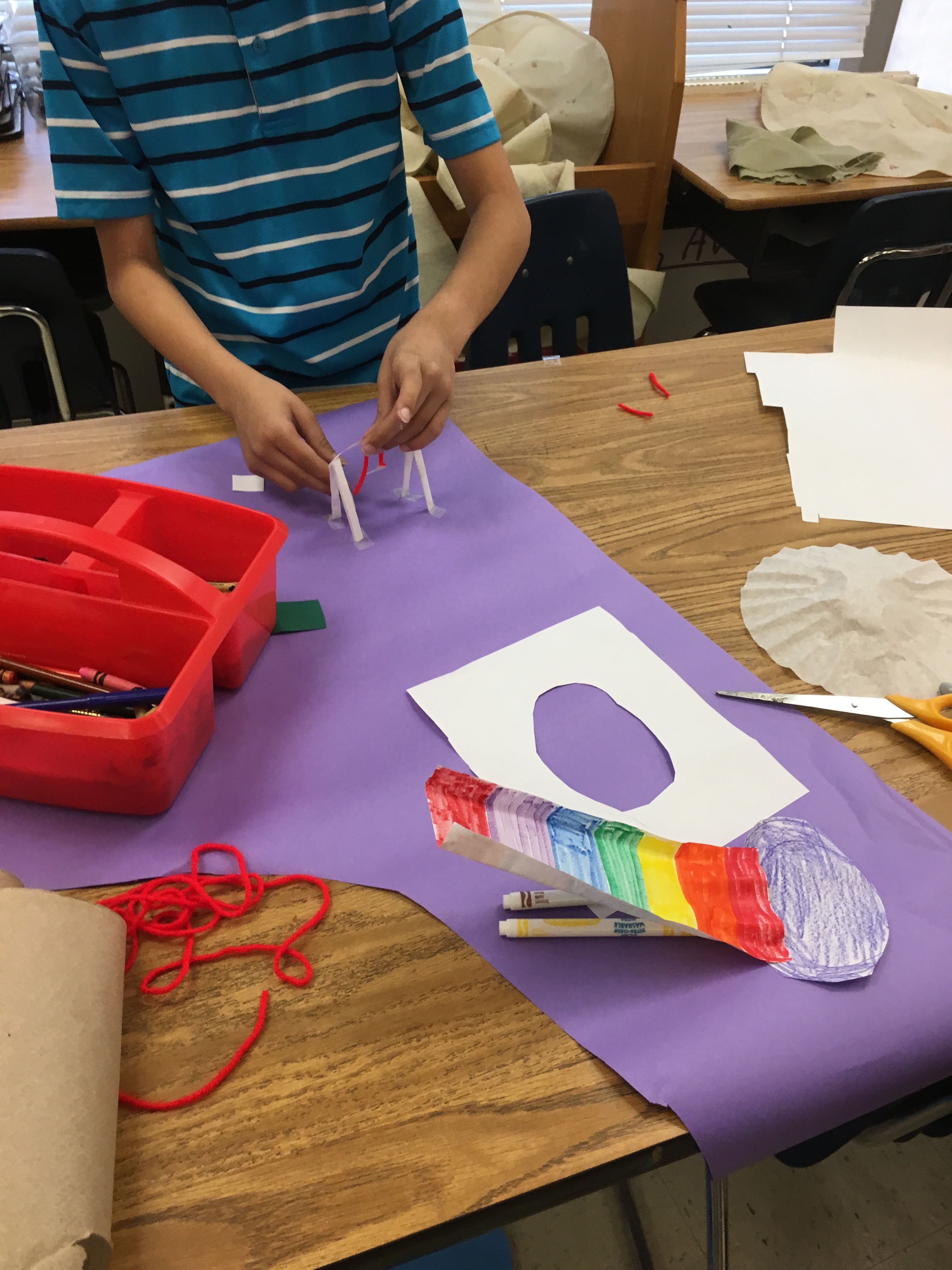 I think I heard about this project from someone, but I can’t remember who or where. It’s rooted in the play-based art theory that George Szekely developed. He was among the first art educators to emphasize the importance of children’s play in art making, and he literally wrote the book on it. I’m always looking for ways to retrofit play into established art projects (here and here) because it’s such a hit, and it adds another element of play learning, too.