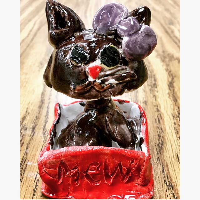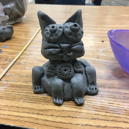 After school one day, I followed Cassie Stephen’s YouTube clay cat bobblehead tutorial so I would be able to teach it better. It was harder than I thought!