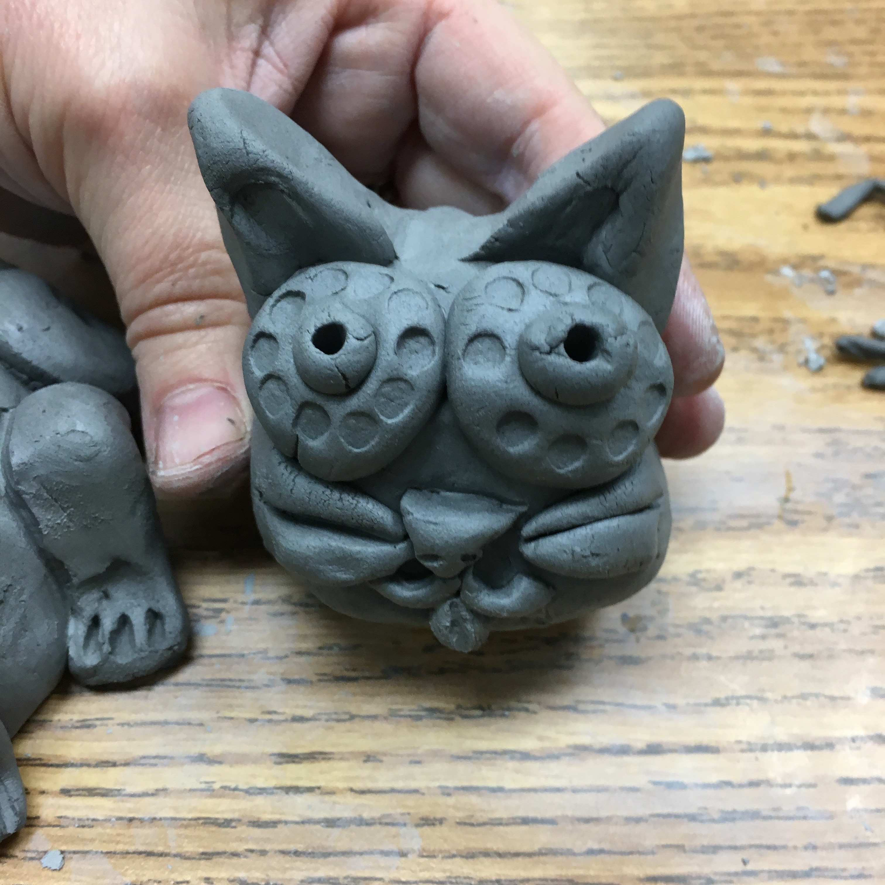 That was a real eye-opener, so after I made my own cat bobblehead, I let all my classes adjust their designs to become clay sculptures without a bobbling head if they wanted. It really took me by surprise how hard it was!