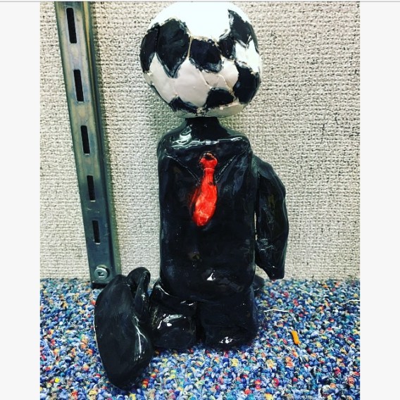 Several students wanted to make sports figures. Their modeling clay practice models worked fine, but the real clay was challenging. In hindsight, I should have either had a tutorial for how to make a person out of real clay, or required them to create their people sitting down for stability. That’s how I will teach it next time.