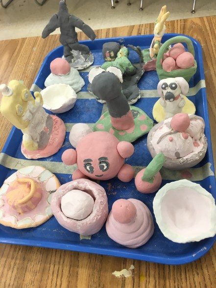 So…we had options for this project. Making functional bobbleheads was more challenging than I thought, so I gave the students the choice to make either a clay bobblehead or a clay sculpture.