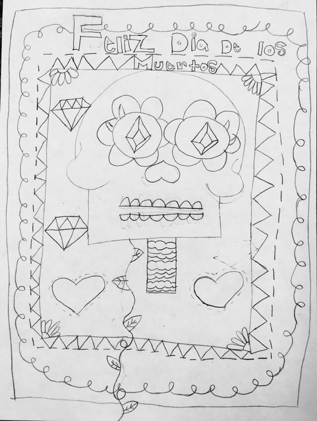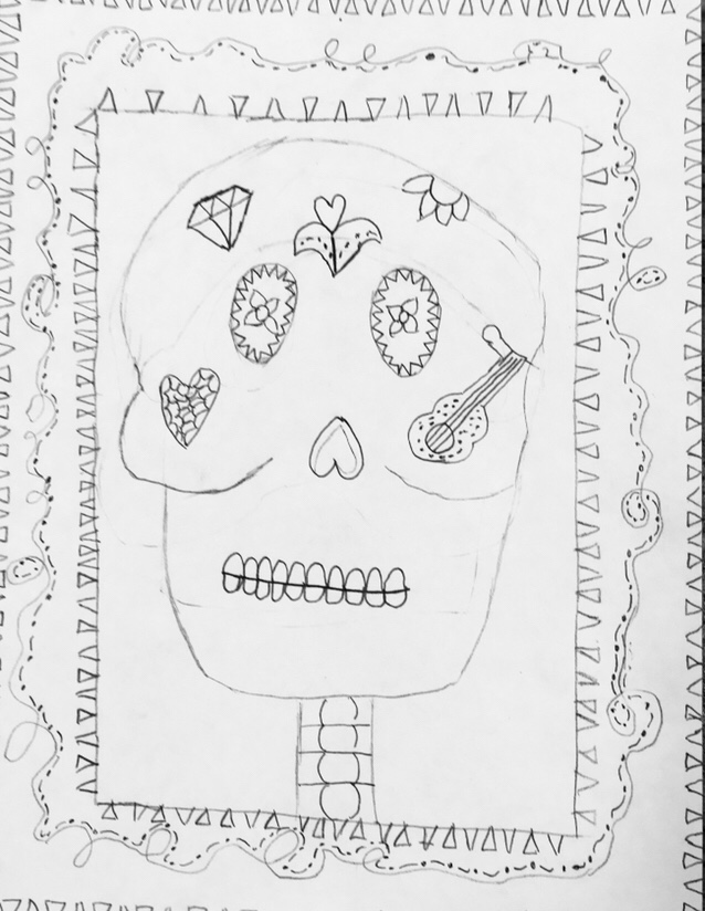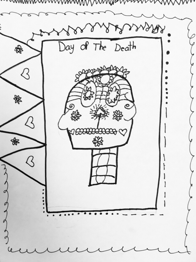 I created a handout that had a reminder of some of the most commonly seen sugar skull designs. On my handout, I stressed that I also wanted the students to come up with their own designs too.