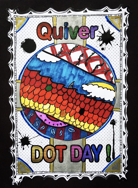We started our designs with pencil on the blank Quiver Dot Day page. Then we added color and depth to our Zentangle designs with Sharpie markers.