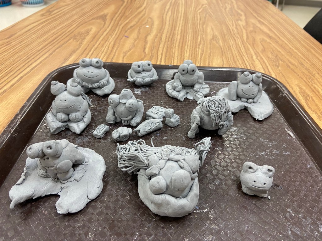 We had so much fun creating our frogs. Their clay frogs’ playful personalities reminded me of Oscar Wilde’s quote that “all art is a self portrait.” It was a joy witnessing the students’ own personalities shine through in their creations.