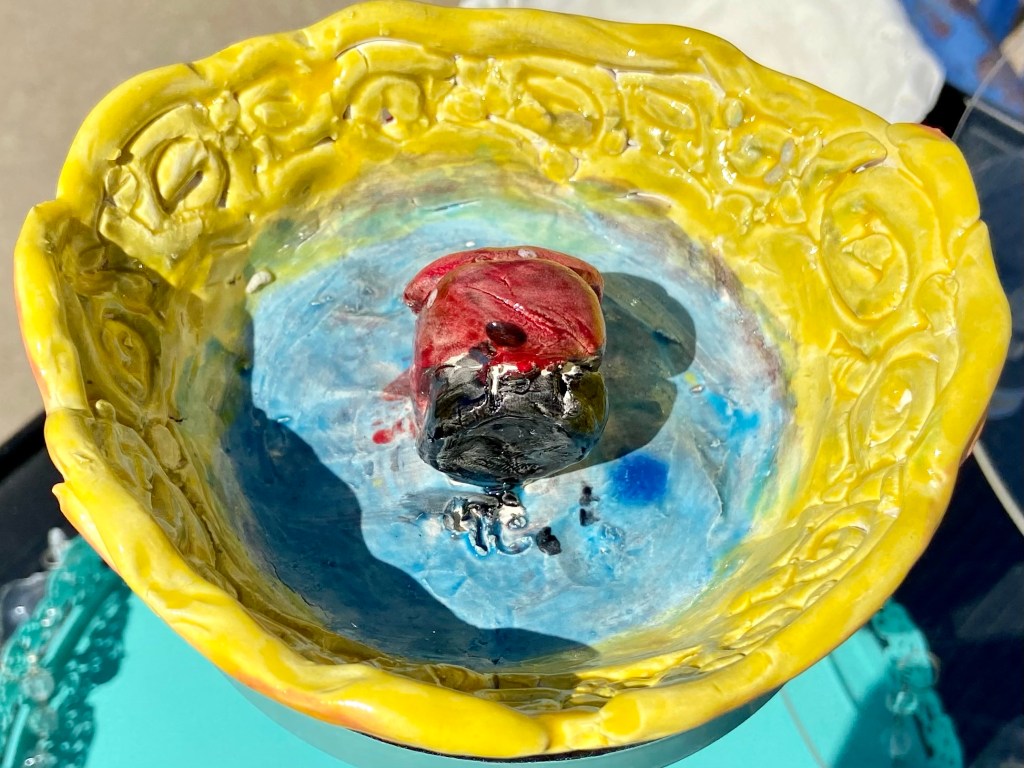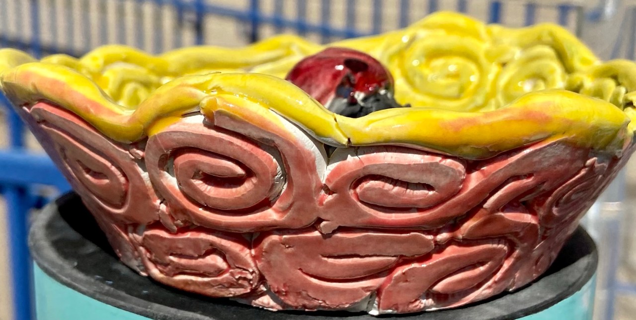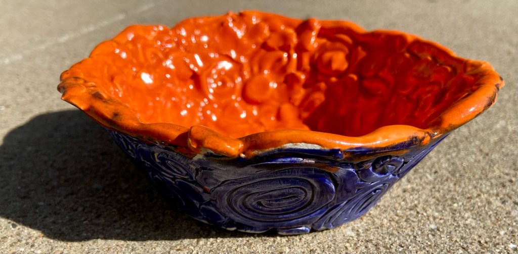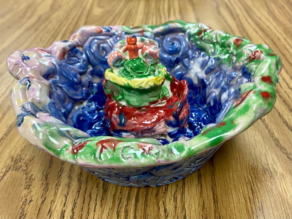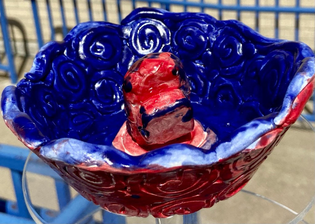 We have students from West Africa in Nigeria from the Yoruba, the Igbo, and the Mandinka tribes at our school. For this project, we focused on how the Igbo and Yoruba tribes’ clay historical vessels influenced our coiled clay bowls. We focused on the symbol-rich patterns of Adire fabric design for the Mandinka tribe in another project.