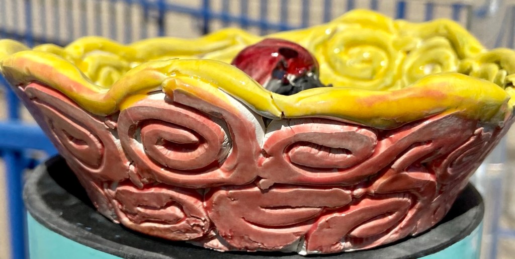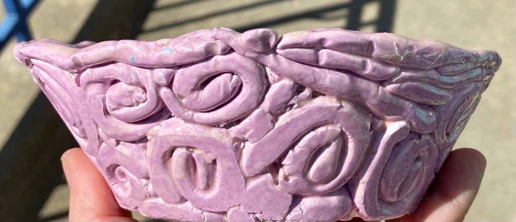 We had about 6 or 7 pots either break or have parts of them split apart. That was surprising and disappointing but a tough reminder of how to build them. I’ve learned to make extras. (I just finish the teacher examples I start for class and make a few extras.)