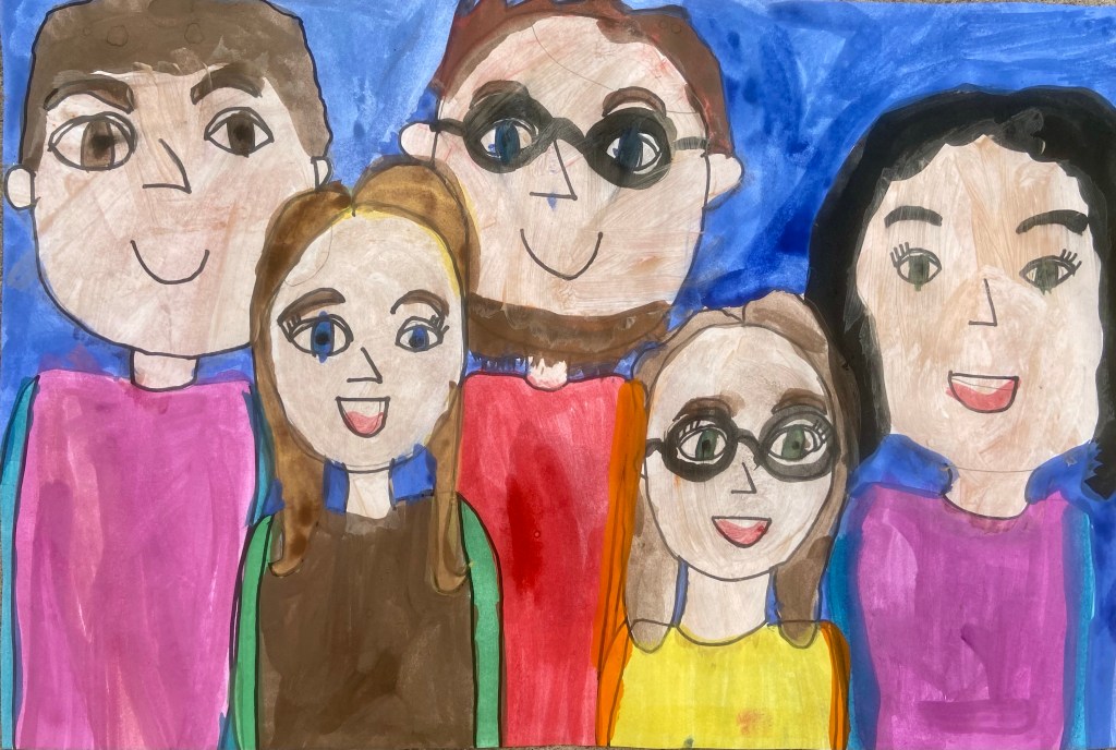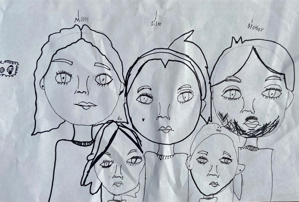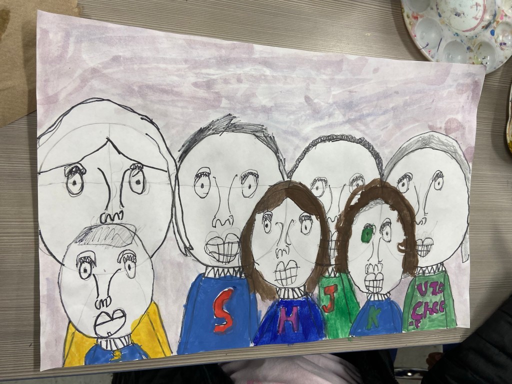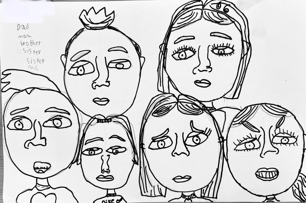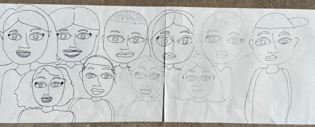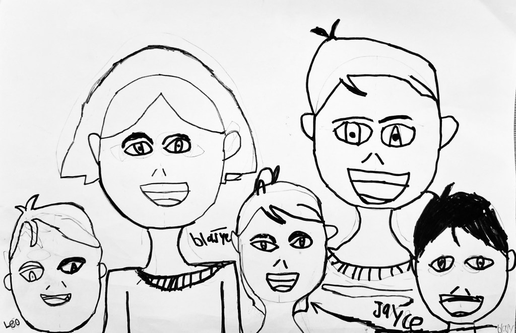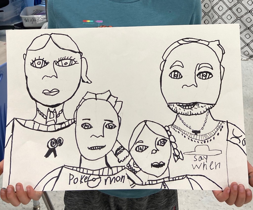 I’ve wanted to try a family portrait drawing project for a while but it seemed so daunting. Our art classes have drawn Sugar Skulls and Tim Burton self portraits, but haven’t attempted drawing family portraits until this year.