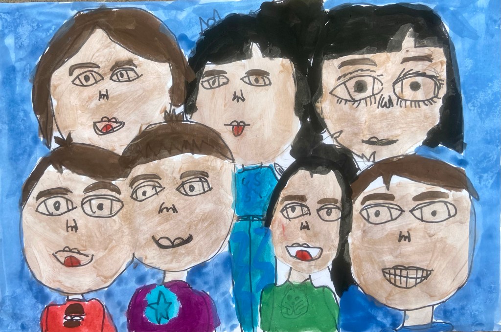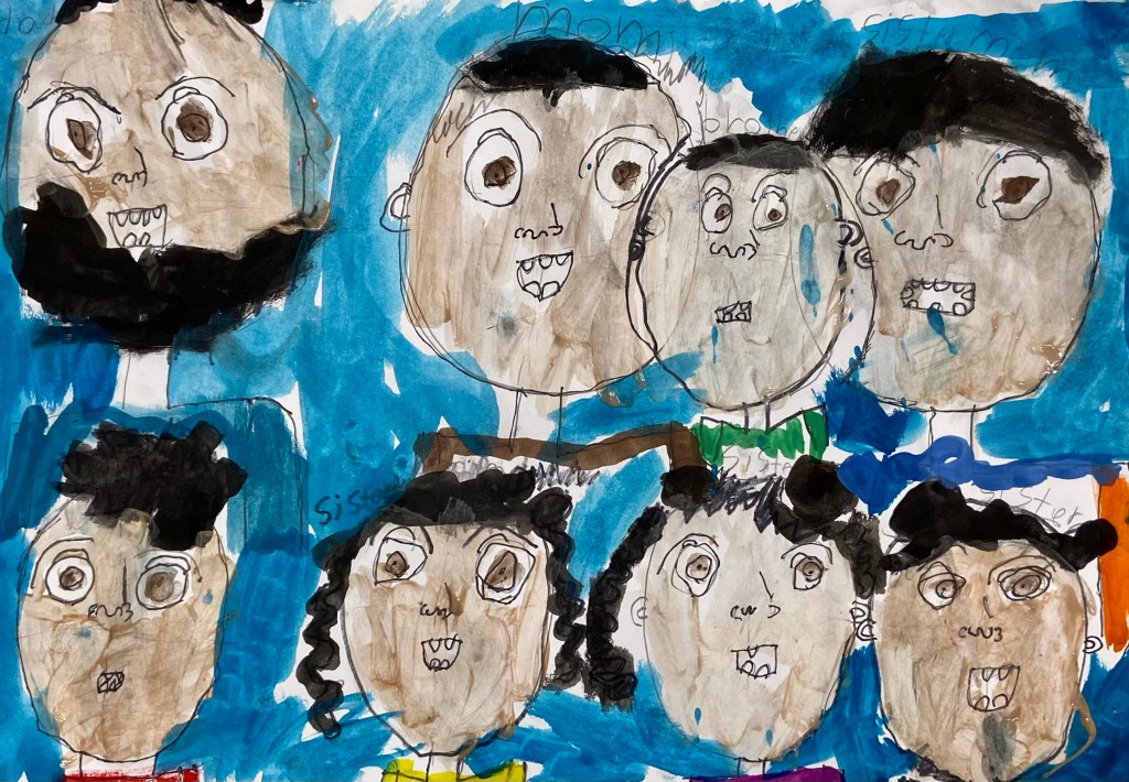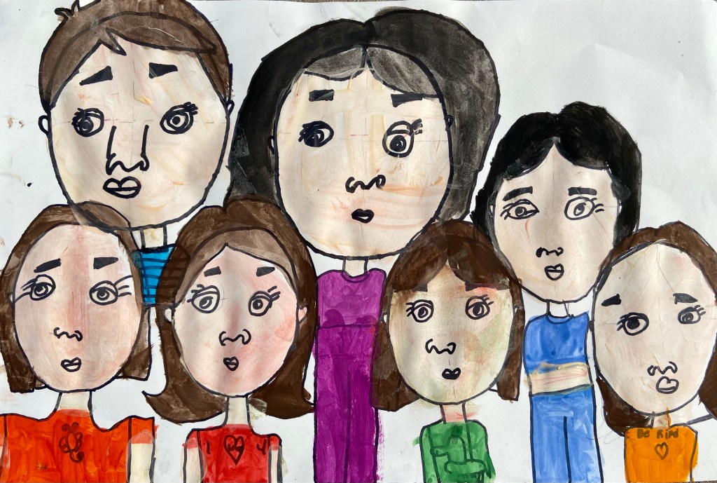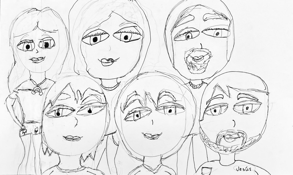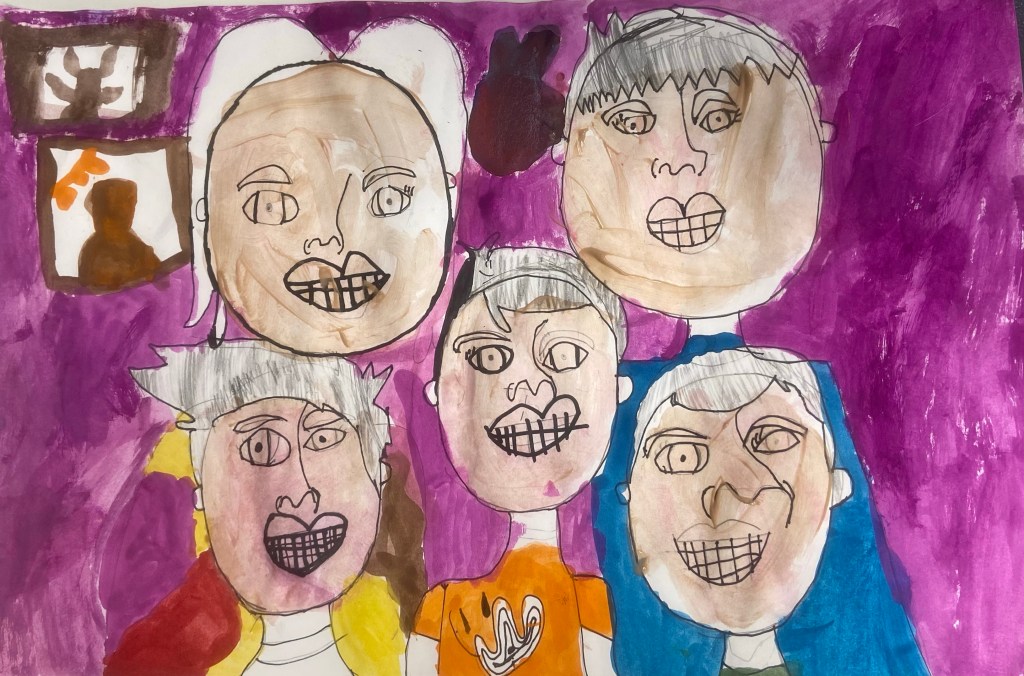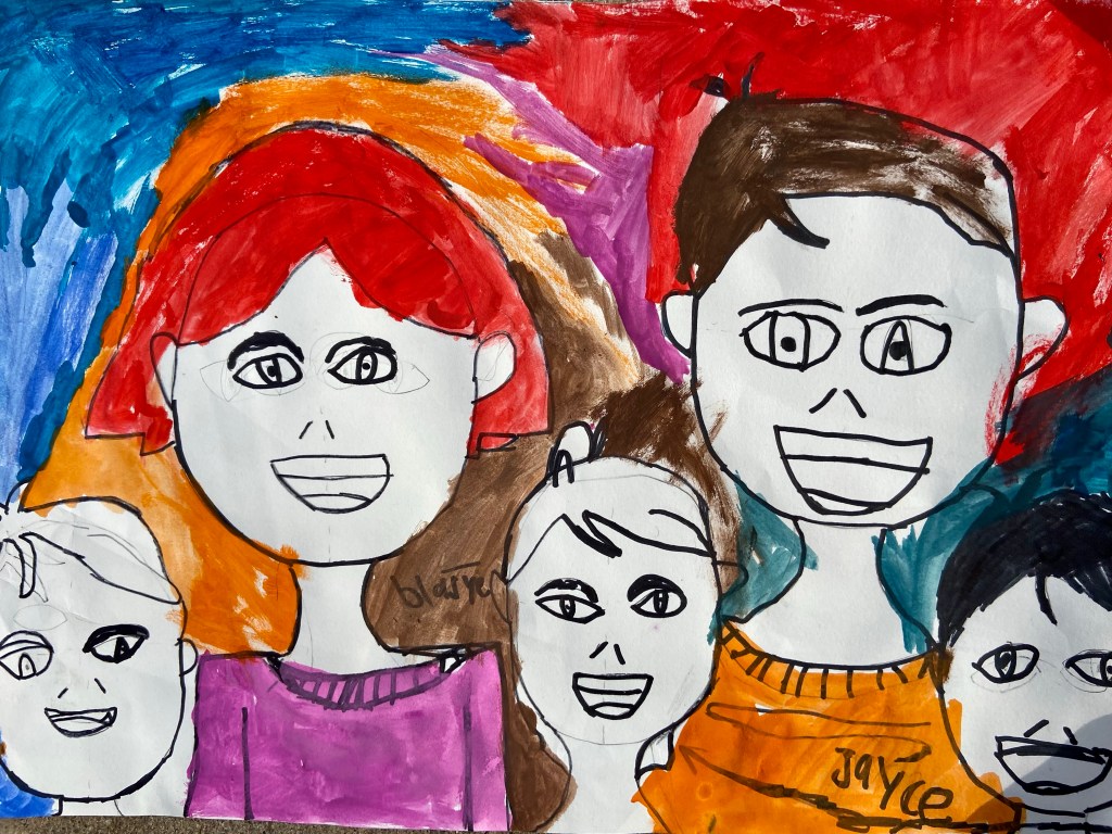 I’ve wanted to try a family portrait drawing project for a while but it seemed so daunting. Our art classes have drawn Sugar Skulls and Tim Burton self portraits, but haven’t attempted drawing family portraits until this year.