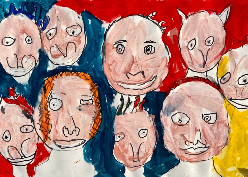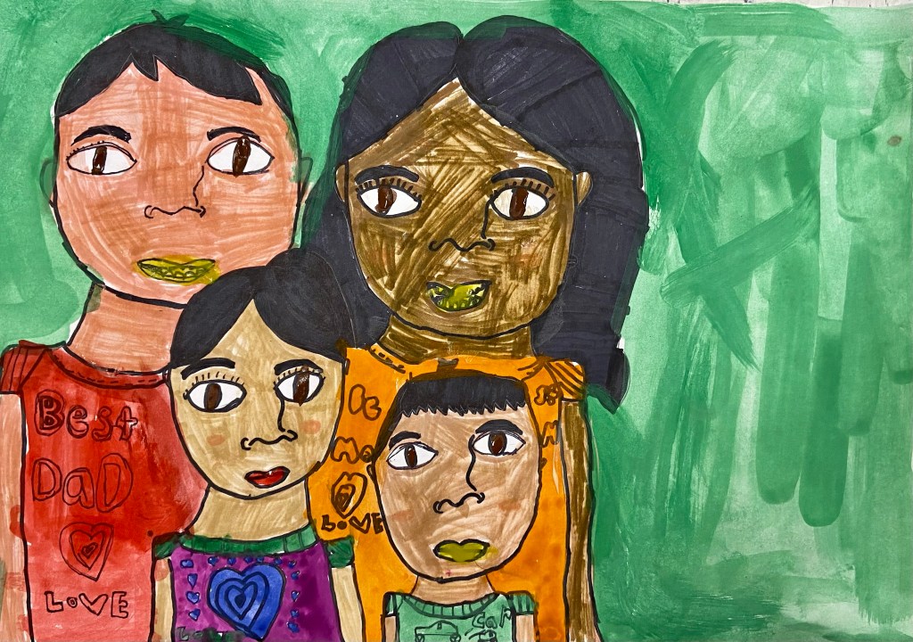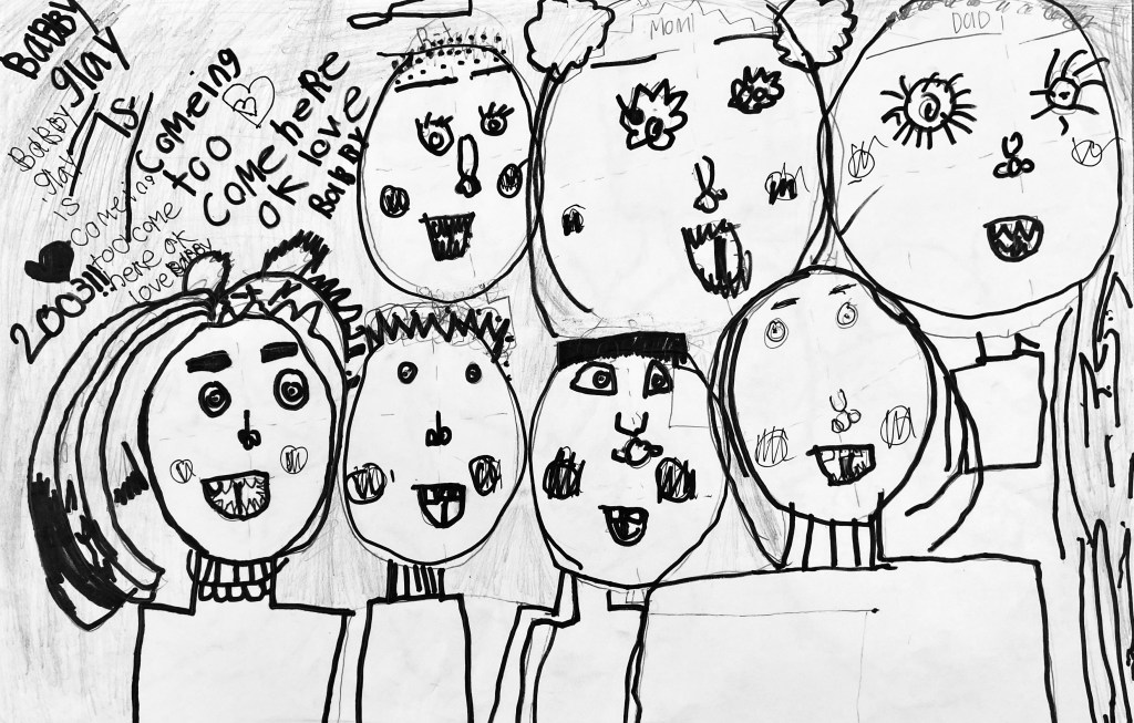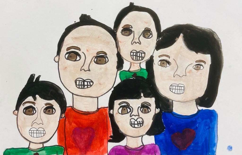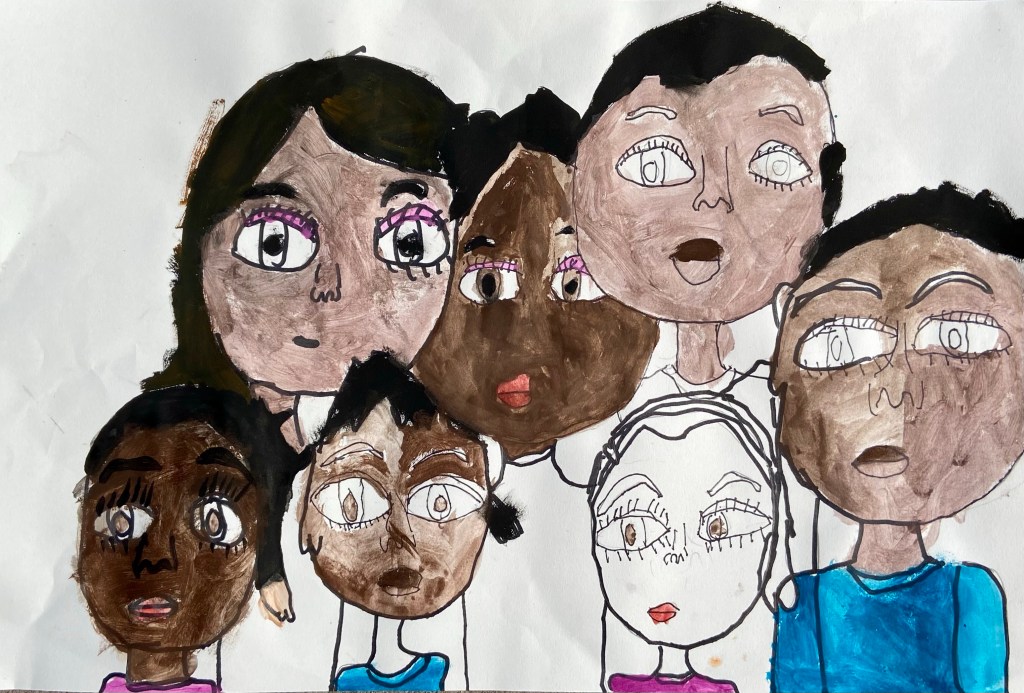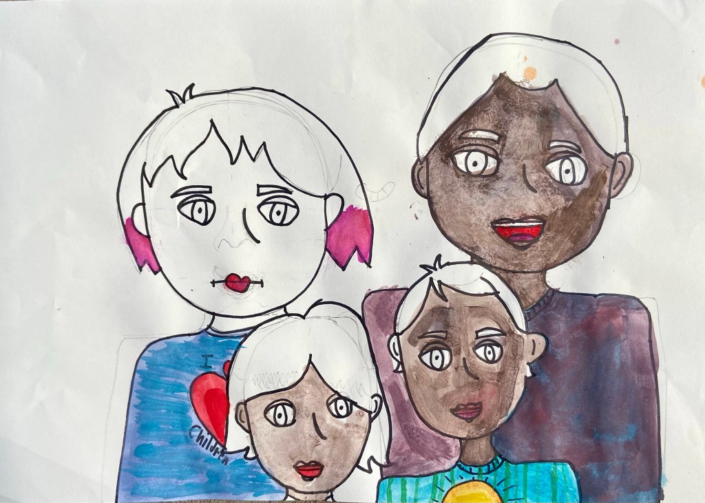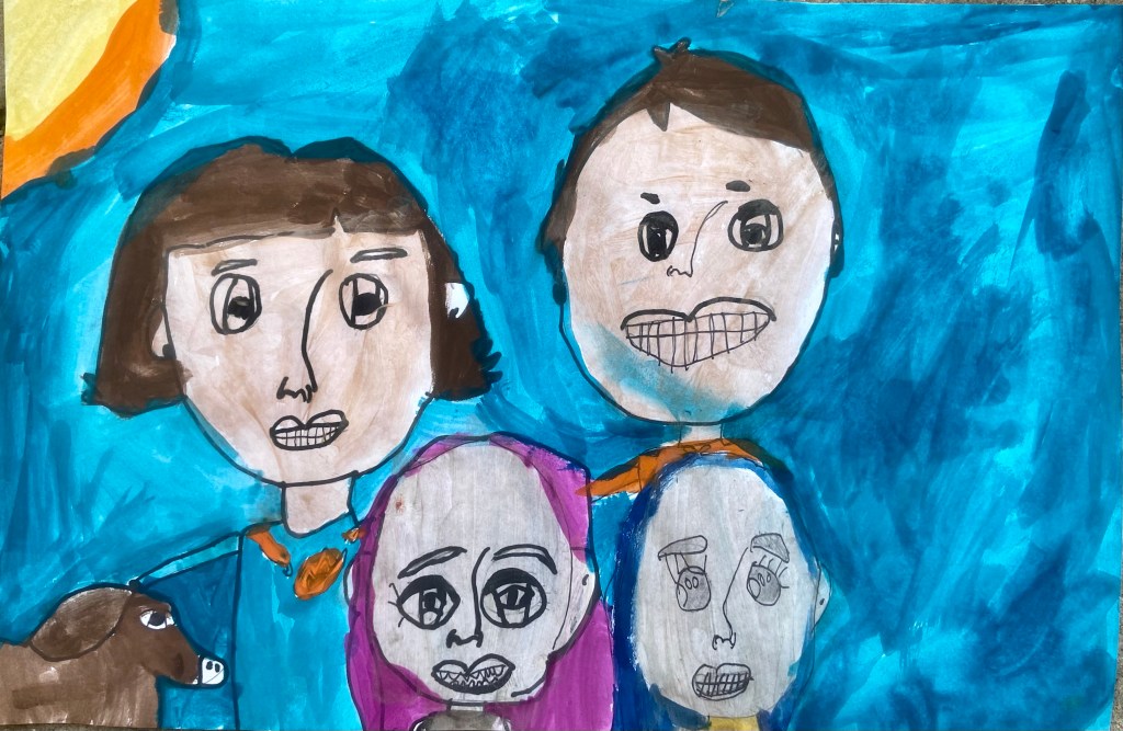 I’ve wanted to try a family portrait drawing project for a while but it seemed so daunting. Our art classes have drawn Sugar Skulls and Tim Burton self portraits, but haven’t attempted drawing family portraits until this year.