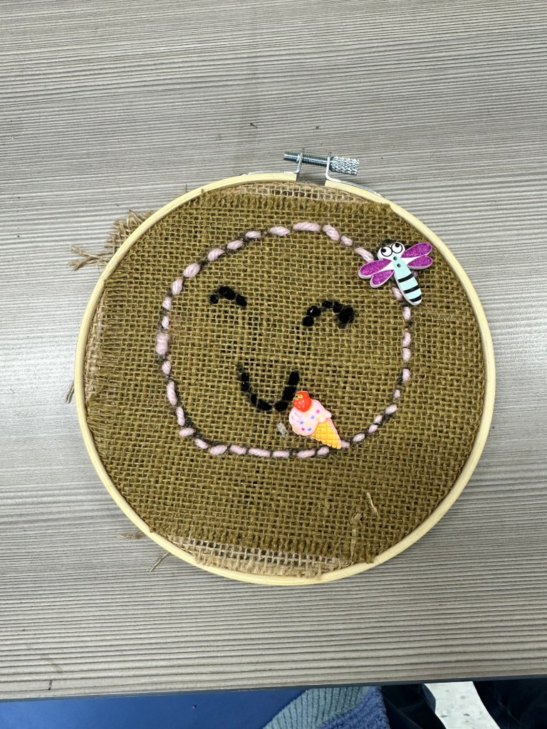 Last summer I stitched an embroidery sampler style kit. Guided by the knowledge found in TikTok and YouTube tutorials, I learned how to create many different stitches. This might have been just the nudge I needed to try teaching it this year.