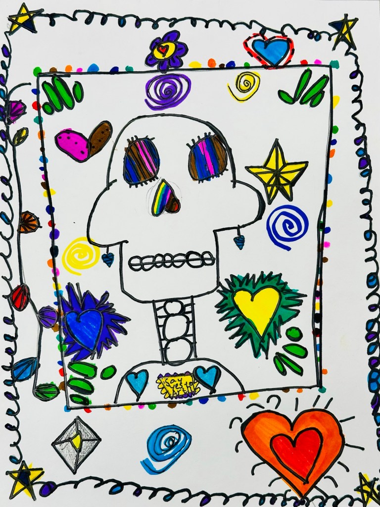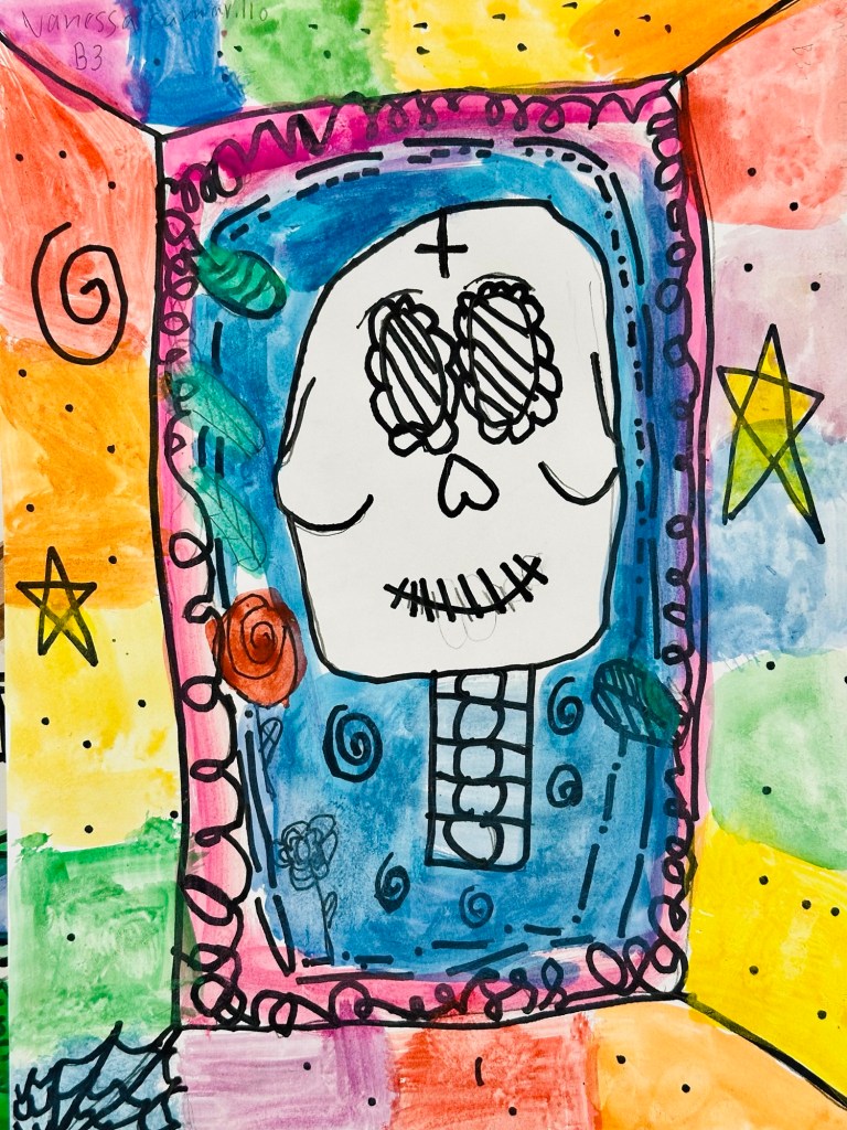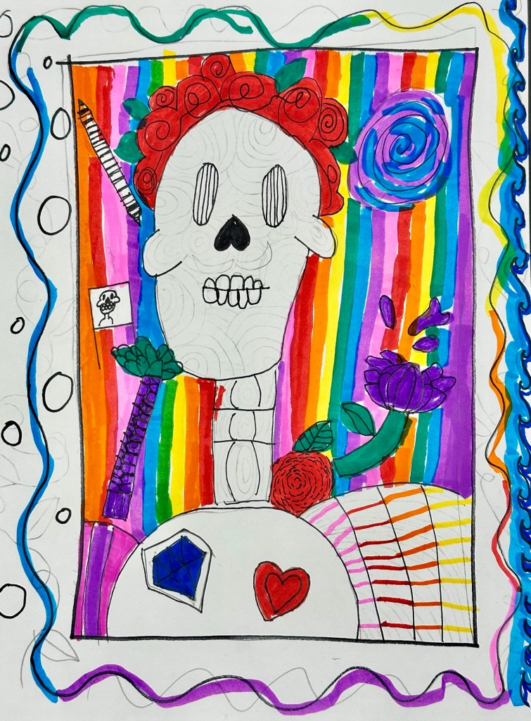 Date: May 31, 2025Author: Julia Forsyth Art Category: 3rd grade Tags: 3rd grade, 3rd grade art, 3rd grade art project, art, art ed, art education, art lesson, art lessons, art project, art projects, arts ed, arts education, design, drawing, elementary, elementary art, elementary art lesson, elementary art projects, Lines, markers, mexico, multicultural, multicultural art, multicultural projects, Painting, Patterns, sharpie, sugar skulls