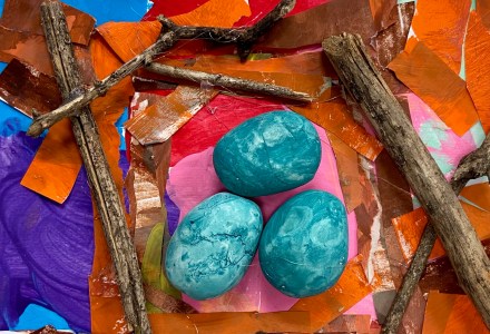 1st grade Robin’s Nest Background Paintings and Completed Nests