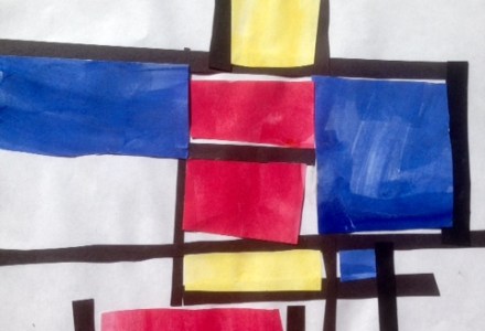 Kindergarten Piet Mondrian inspired Primary Colored Painted Paper Grids