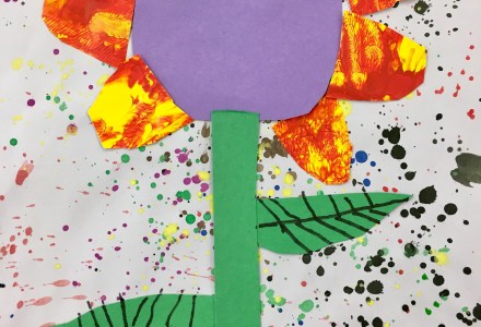 Kindergarten Eric Carle-inspired Painted Paper Flower on a Splatter Paint Background